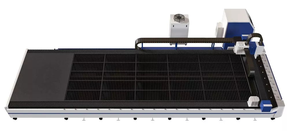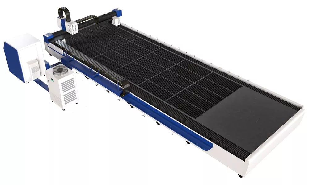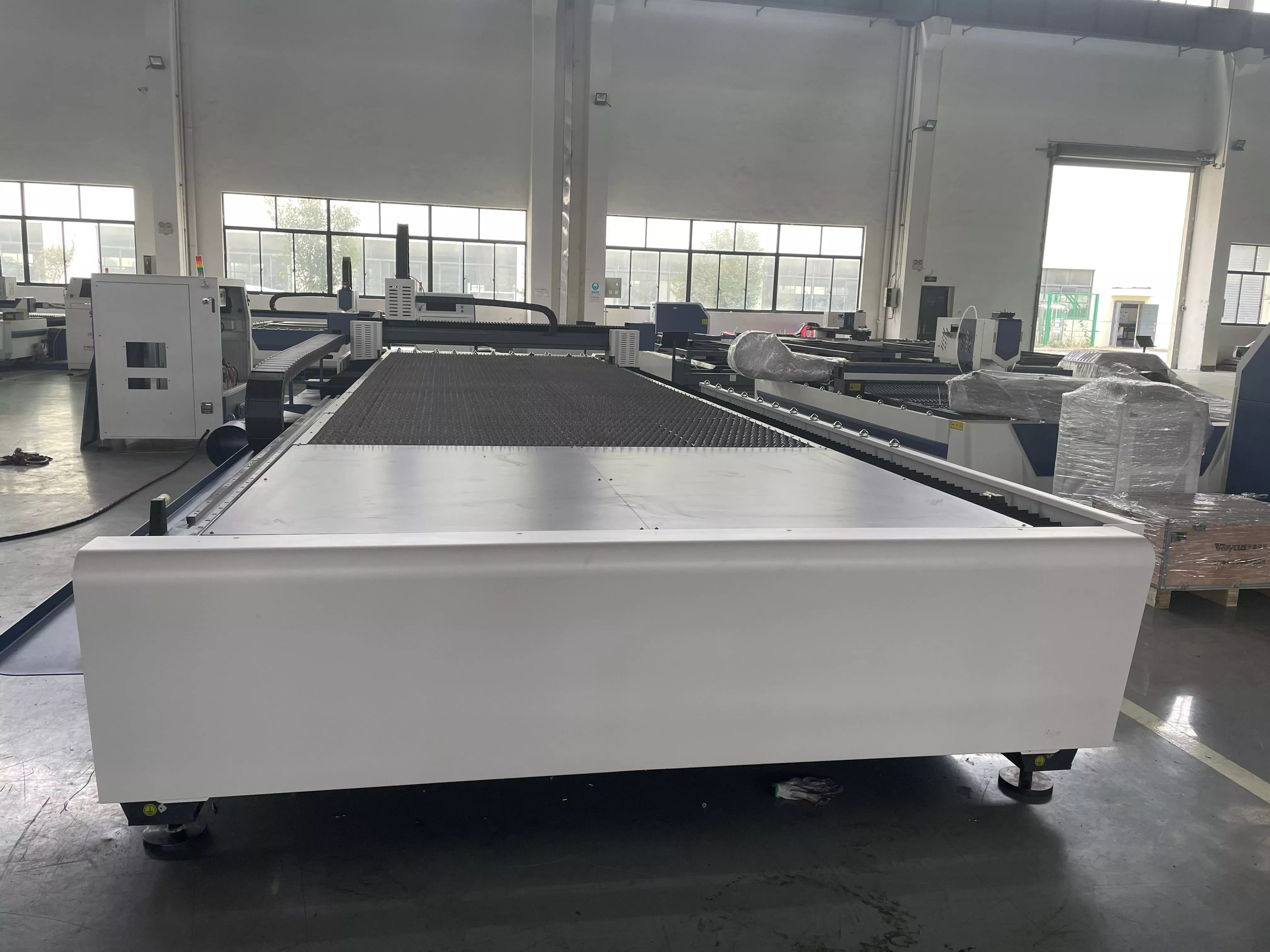 Корпус станка. Стол изготовлен методом сварки, подвергшейся высокотемпературному отжигу, обработан на американском высокоточном крупногабаритном фрезерном станке. Конечный продукт обладает высокой механической прочностью и жесткостью, что позволяет резать детали с очень высокой точностью и скоростью. Станина обеспечивает высокую грузоподъемность и защиту от вибраций.