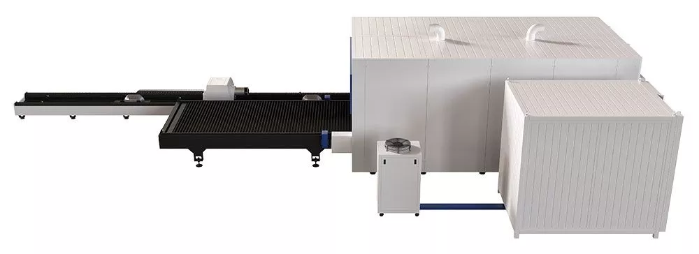Оборудование лазерной резки металла AMN/1530 со сменным столом, защитной кабиной и приставным труборезом длиной 6 метров обладает рядом преимуществ.