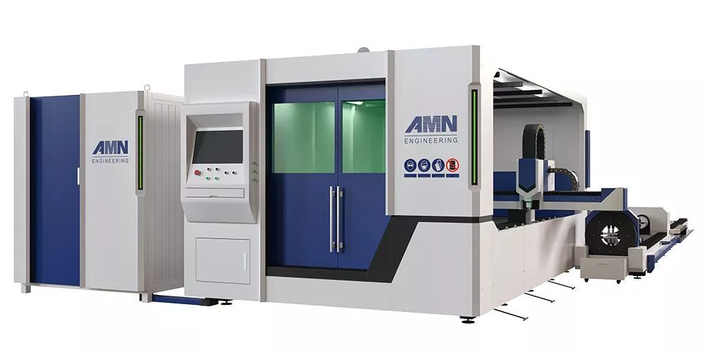 Станки лазерной резки металла AMN/1530 со сменным столом, защитной кабиной и приставным труборезом длиной 6 метров относятся к промышленному оборудованию высокого класса, отличаются высоким качеством и точностью реза, высокой скоростью реза и производительностью. Этот станок интересен, в первую очередь, своей универсальностью, поскольку с его помощью можно выполнять раскрой как листового металла, так и металлических труб. Станок оснащен сменными столом, что гарантирует безостановочную резку металла, а защитная кабина обеспечит полную безопасность производственного процесса. Этот универсальный станок идеально подойдет для производства, нуждающегося в больших объемах резки и компаний с непрерывным производственным циклом. Это оборудование комплектуется источниками мощностью от 1,5 кВт до 4 кВт. Оно гарантирует Вам высокую производительность 24/7, точность реза и качественную обработку углеродистой стали, нержавеющей стали, алюминия, оцинковки, латуни и меди. Станок лазерной резки металла AMN/1530 со сменным столом, защитной кабиной и приставным труборезом длиной 6 метров, на сегодняшний день, является самой универсальной моделью в широкой линейке станков AMN Engineering, поскольку позволяет выполнять непрерывную и безопасную резку листового металла, а также металлических труб с использованием одного вида оборудования.