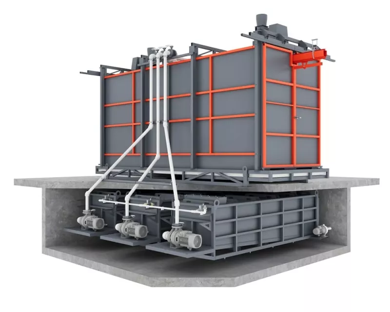 - Баки – установлены в металлический каркас порошковым антикоррозийным покрытием, изготовлены из полипропилена (8 мм). НЕОБХОДИМ ПРИЯМОК (глубина 1200 мм